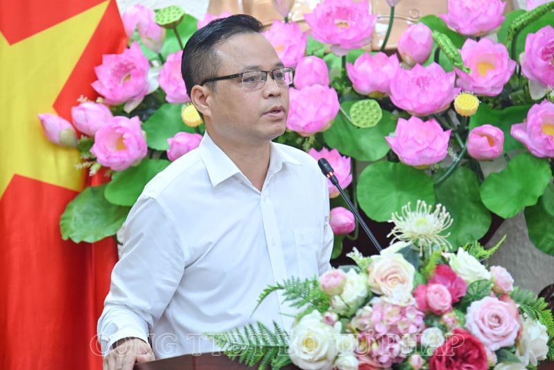 Đồng chí Phạm Đức Dụ, Phó Cục trưởng Cục Công nghệ thông tin báo cáo tại cuộc họp.