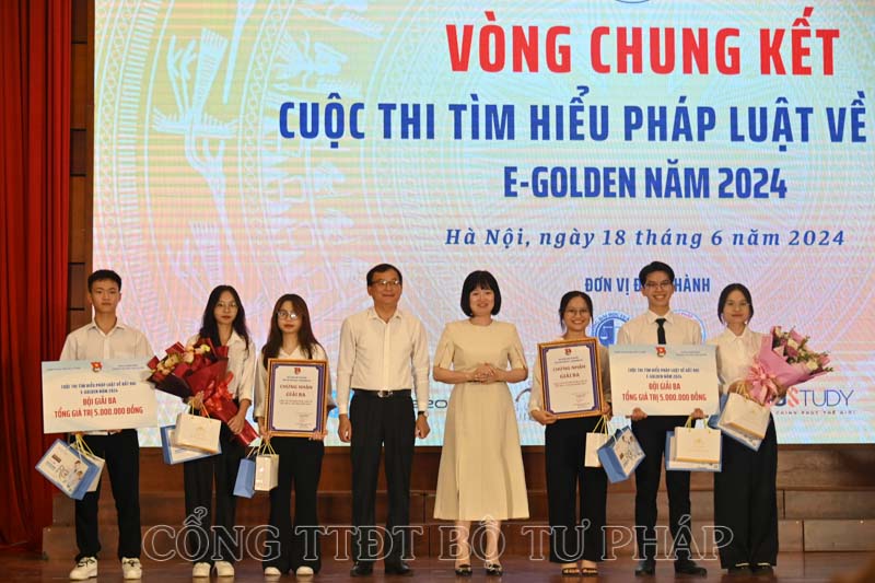 Phó Cục trưởng Cục Phổ biến, giáo dục pháp luật Ngô Quỳnh Hoa trao giải thưởng cho các Đội thi giành Giải Ba.