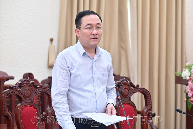 Phó Cục trưởng Cục PBGDPL Phan Hồng Nguyên báo cáo tại buổi làm việc.