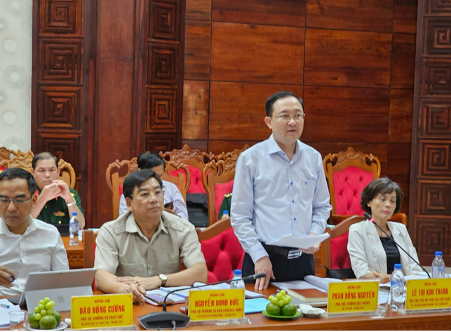 Tham gia buổi làm việc có đồng chí Võ Văn Cảnh, Phó Chủ tịch UBND tỉnh, Chủ tịch Hội đồng phối hợp PBGDPL tỉnh; đồng chí Trần Phú Hùng, Phó Chủ tịch HĐND tỉnh; đồng chí Phan Thị Hồng Thắng, Giám đốc Sở Tư pháp, Phó Chủ tịch thường trực Hội đồng phối hợp PBGDPL tỉnh; đại diện các sở, ban, ngành là thành viên Hội đồng phối hợp PBGDPL tỉnh.