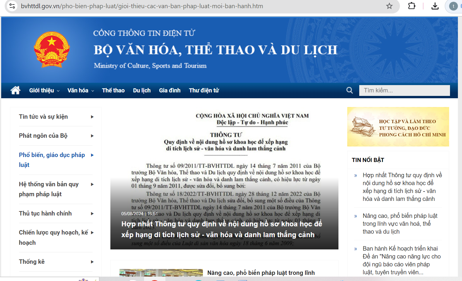 Cổng thông tin điện tử Bộ Văn hóa, Thể thao và Du lịch