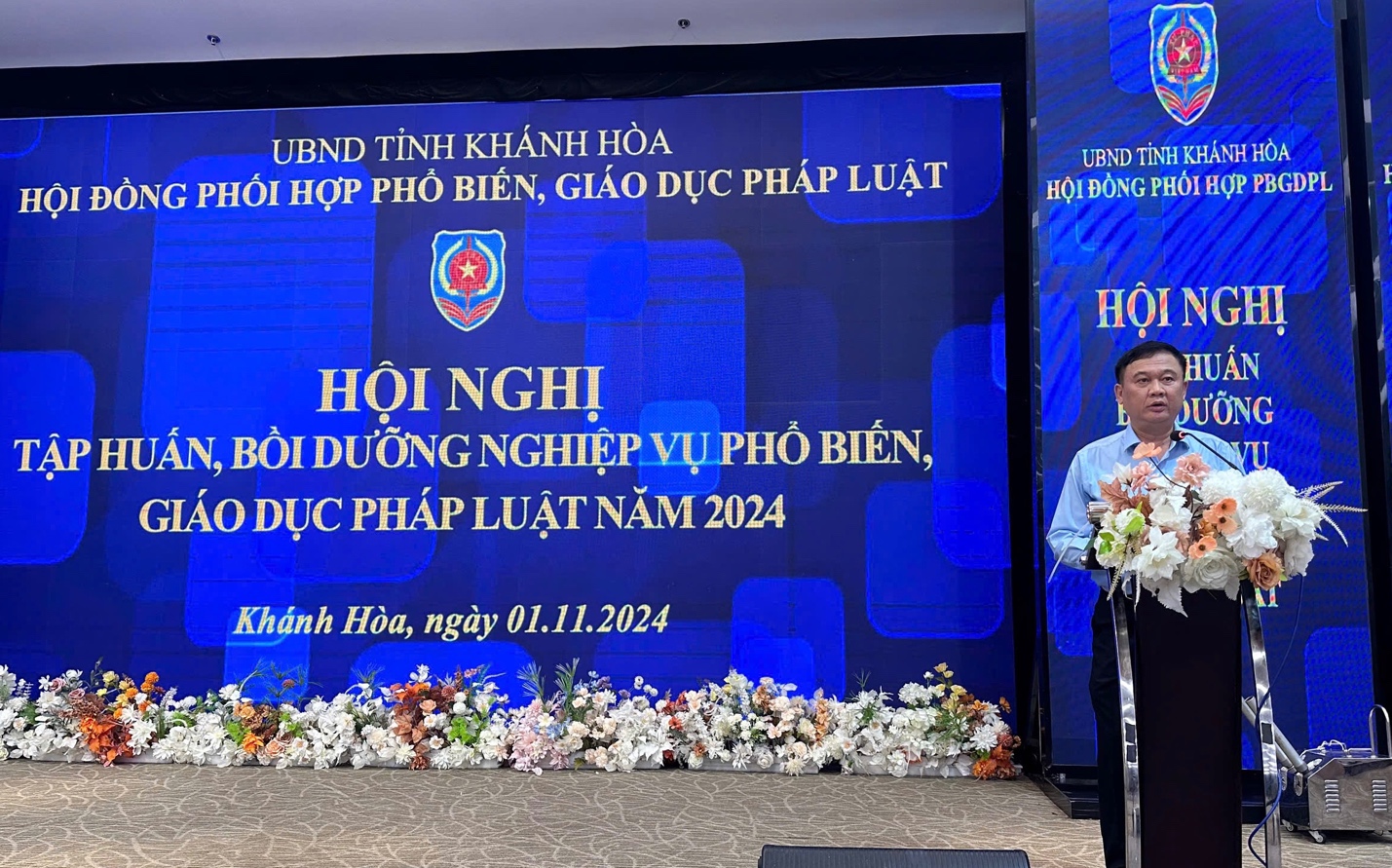 Đồng chí Đặng Văn Khánh - Phó Giám đốc Sở Tư pháp, Phó Chủ tịch Hội đồng phối hợp phổ biến, giáo dục pháp luật tỉnh Khánh Hoà phát biểu khai mạc Hội nghị