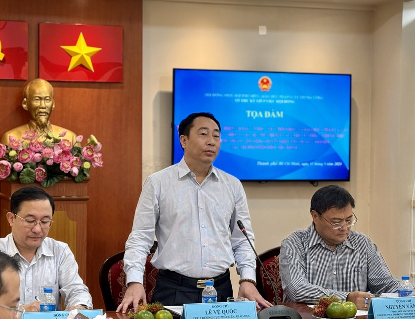 Sáng ngày 11/9, tại Sở Tư pháp TP Hồ Chí Minh đã diễn ra buổi Tọa đàm Trao đổi, nắm bắt thông tin về việc triển khai công tác phổ biến, giáo dục pháp luật (PBGDPL) và tình hình thực hiện các Quyết định của Thủ tướng Chính phủ: số 407/QĐ-TTg ngày 30/3/2022; số 977/QĐ-TTg ngày 11/8/2022 trên địa bàn thành phố Hồ Chí Minh do Bộ Tư pháp tổ chức. Đồng chí Lê Vệ Quốc, Cục trưởng Cục PBGDPL; đồng chí Phan Hồng Nguyên, Phó Cục trưởng Cục PBGDPL; đồng chí Nguyễn Văn Vũ, Phó Giám đốc Sở Tư pháp TP Hồ Chí Minh chủ trì Tọa đàm. Tham dự Tọa đàm còn có đồng chí Phạm Quang Hiếu, Quyền Cục trưởng Cục Công nghệ thông tin.