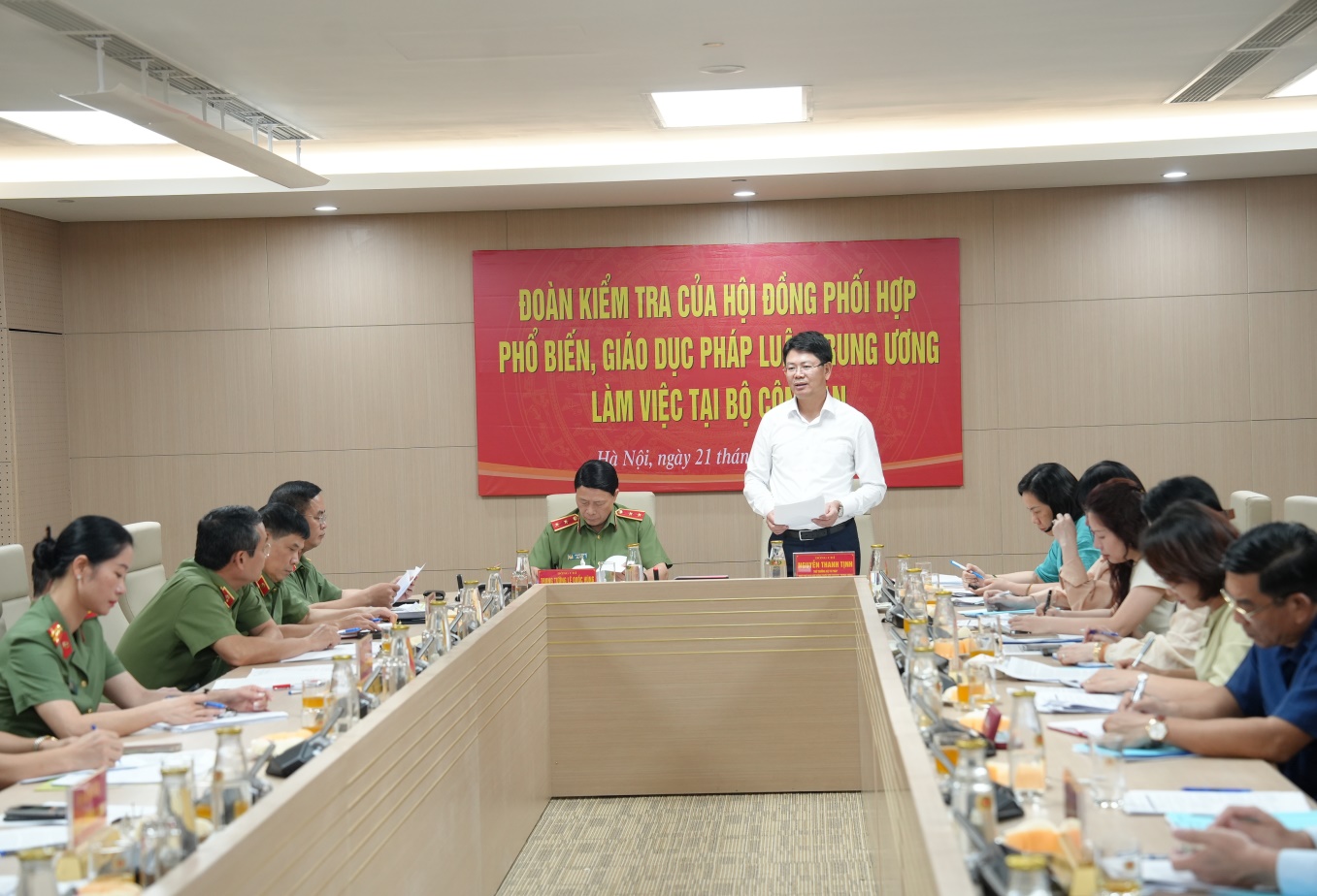 Đoàn kiểm tra của Hội đồng phối hợp phổ biến, giáo dục pháp luật trung ương làm việc tại Bộ Công an