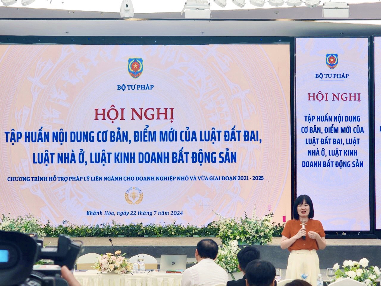 Triển khai kế hoạch hoạt động năm 2024 của Chương trình hỗ trợ pháp lý liên ngành cho doanh nghiệp nhỏ và vừa giai đoạn 2021 - 2025, ngày 22/7/2024, Cục Phổ biến, giáo dục pháp luật, Bộ Tư pháp phối hợp với Sở Tư pháp tỉnh Khánh Hòa tổ chức Hội nghị tập huấn những nội dung, điểm mới của các Luật Đất đai năm 2024, Luật Nhà ở năm 2023, Luật Kinh doanh bất động sản năm 2023 có liên quan đến doanh nghiệp. Có hơn 350 đại biểu đến tham dự Hội nghị là các doanh nghiệp nhỏ và vừa, các cơ quan, tổ chức liên quan của địa phương. PGS.TS. Nguyễn Quang Tuyến, Phó Chủ tịch Hội đồng trường, Trưởng khoa Pháp luật kinh tế Trường Đại học Luật Hà Nội tham gia báo cáo viên và trình bày các chuyên đề tại Hội nghị.