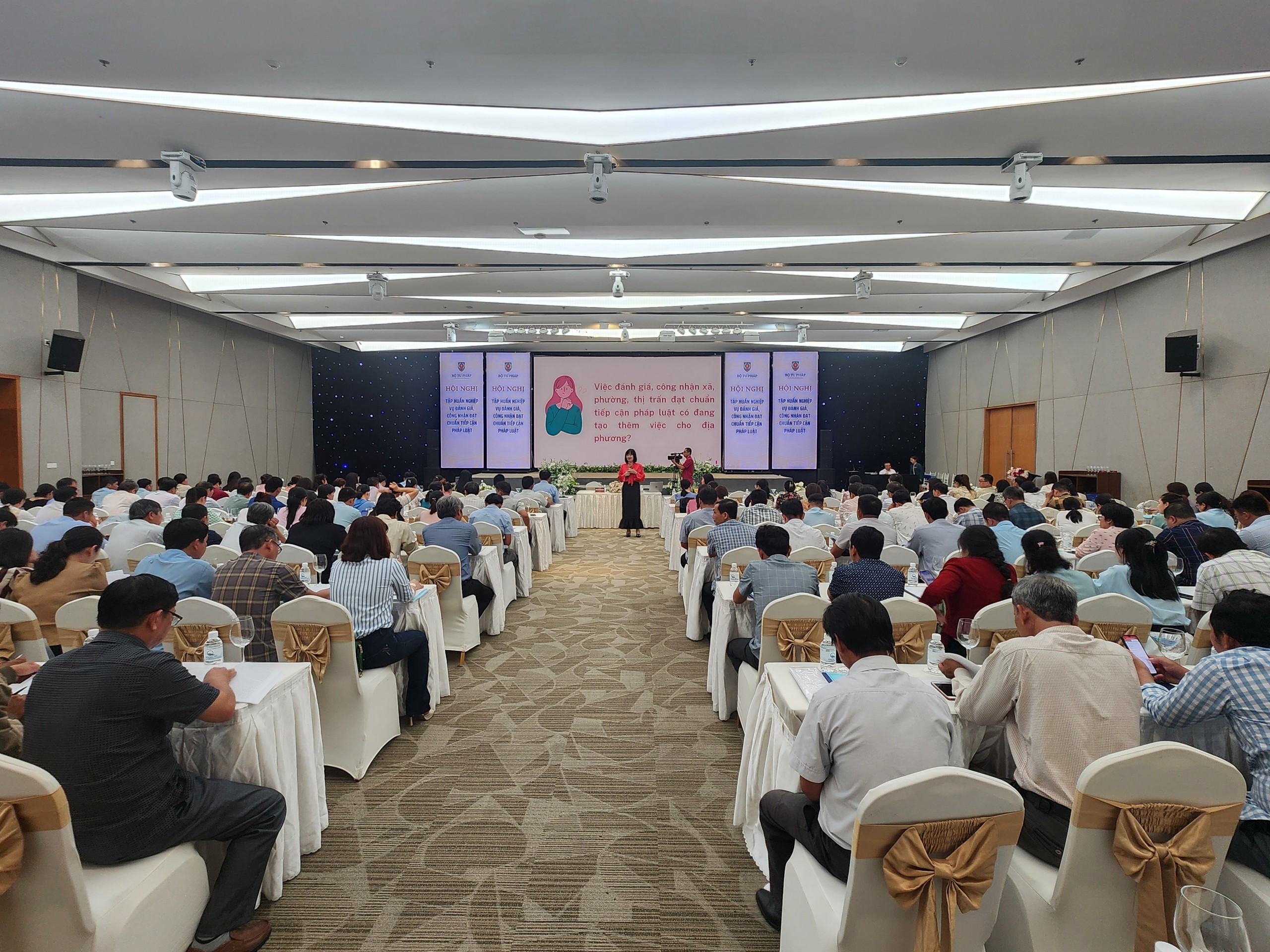Thực hiện nhiệm vụ được giao trong Kế hoạch triển khai Quyết định số 25/2021/QĐ-TTg và Chương trình mục tiêu quốc gia xây dựng nông thôn mới của Bộ Tư pháp năm 2024, theo đề nghị của Sở Tư pháp tỉnh Khánh Hòa, sáng ngày 23/7/2024, Bộ Tư pháp đã phối hợp với Sở Tư pháp tỉnh Khánh Hòa tổ chức Hội nghị tập huấn nghiệp vụ đánh giá, công nhận đạt chuẩn tiếp cận pháp luật cho hơn 300 đại biểu là cán bộ, công chức Sở Tư pháp, Phòng Tư pháp, Hội đồng đánh giá, công nhận chuẩn tiếp cận pháp luật, Lãnh đạo Ủy ban nhân dân và công chức Tư pháp - Hộ tịch cấp xã được giao tham mưu, triển khai nhiệm vụ này trên địa bàn tỉnh Khánh Hòa. Hội nghị do TS. Ngô Quỳnh Hoa, Phó Cục trưởng Cục Phổ biến, giáo dục pháp luật, Bộ Tư pháp chủ trì và là báo cáo viên của Hội nghị. Về phía Sở Tư pháp tỉnh Khánh Hòa có đồng chí Đặng Văn Khánh, Phó Giám đốc Sở cùng tham dự.