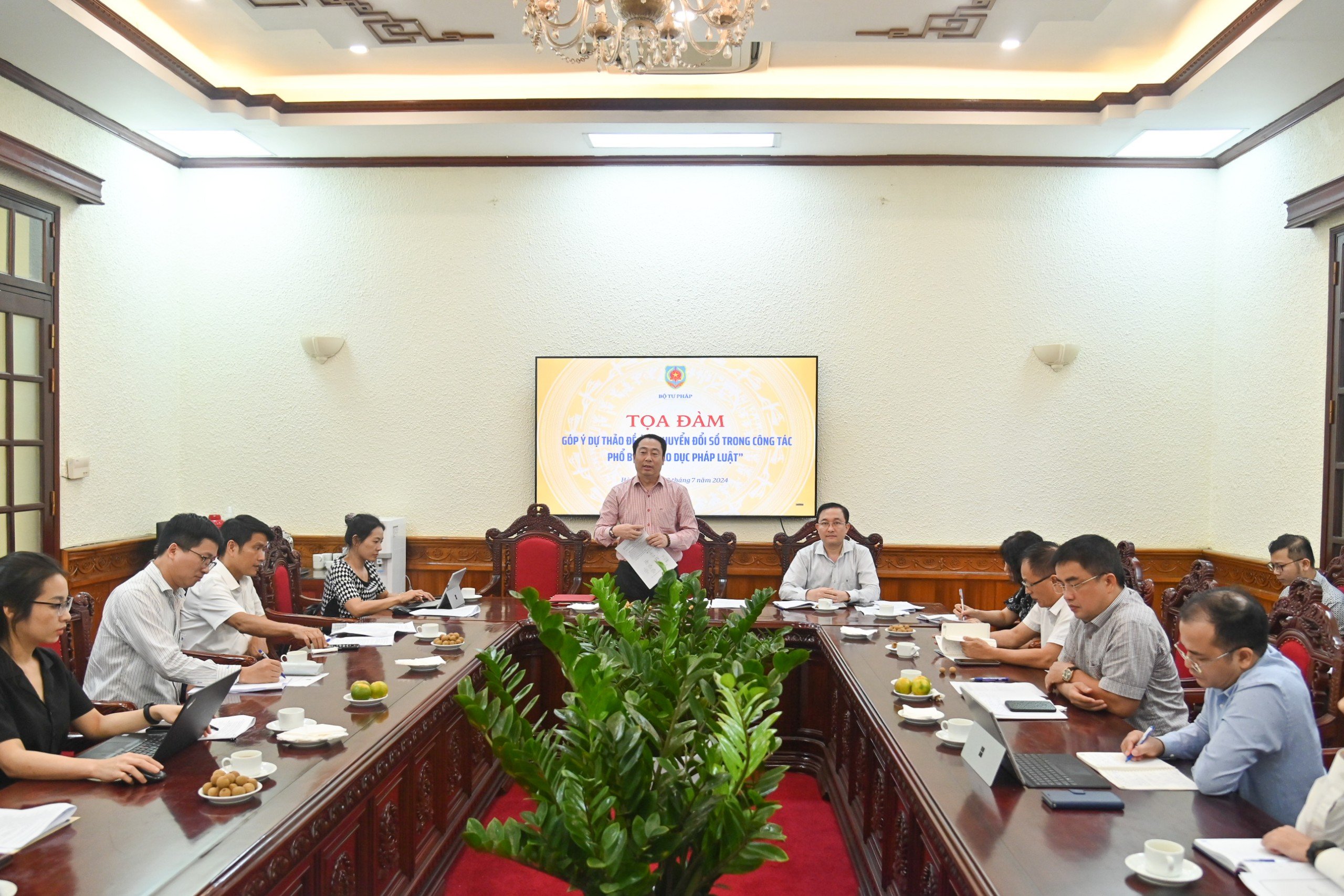 Chiều ngày 02/7/2024, tại trụ sở Bộ Tư pháp, Cục Phổ biến, giáo dục pháp luật đã tổ chức Tọa đàm Tổ Biên tập góp ý dự thảo Đề án “Chuyển đổi số trong công tác phổ biến, giáo dục pháp luật” (sau đây gọi là Đề án) dưới sự chủ trì của đồng chí Lê Vệ Quốc, Cục trưởng Cục Phổ biến, giáo dục pháp luật, Phó Trưởng Ban soạn thảo dự thảo Đề án. Tham dự Tọa đàm có các đại biểu là thành viên Tổ biên tập dự thảo Đề án, một số chuyên gia về công nghệ thông tin, công chức của Cục Phổ biến, giáo dục pháp luật (PBGDPL) và một số cơ quan báo chí tham dự, ghi hình, đưa tin.