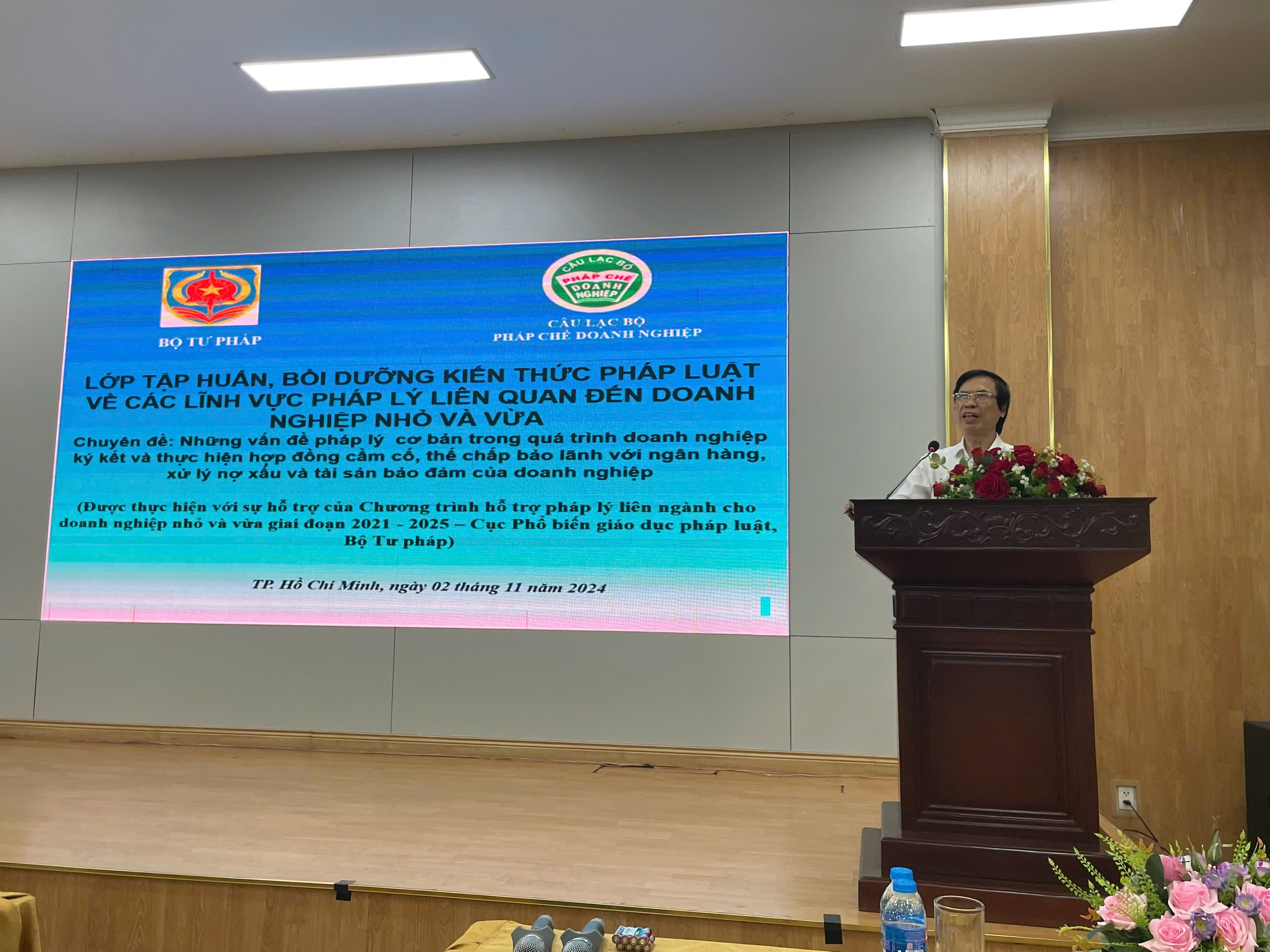 Ngày 02/11/2024, tại Nhà khách Người có công – Bộ Lao động, Thương binh – Xã hội, số 168 Hai Bà Trưng, phường ĐaKao, Quận 1, Thành phố Hồ Chí Minh, Câu lạc bộ Pháp chế doanh nghiệp đã tổ chức lớp tập huấn, bồi dưỡng kiến thức pháp luật về những vấn đề pháp lý cơ bản trong quá trình doanh nghiệp ký kết và thực hiện hợp đồng cầm cố, thế chấp bảo lãnh với ngân hàng, xử lý nợ xấu và tài sản bảo đảm của doanh nghiệp với sự hỗ trợ của Cục Phổ biến, giáo dục pháp luật (PBGDPL) theo Chương trình Hỗ trợ pháp lý liên ngành cho doanh nghiệp nhỏ và vừa giai đoạn 2021 – 2025.