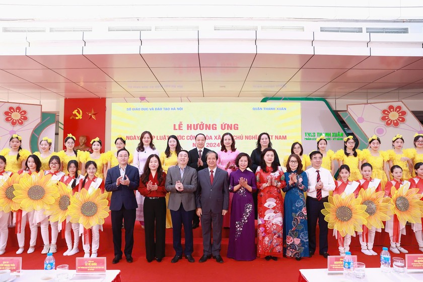 Ngày 31/10, Sở GD&ĐT Hà Nội phối hợp với quận Thanh Xuân tổ chức lễ hưởng ứng Ngày Pháp luật nước Cộng hòa xã hội chủ nghĩa Việt Nam năm 2024 tại Trường THCS Thanh Xuân (quận Thanh Xuân, Hà Nội) kết nối trực tuyến đến các điểm cầu của tất cả các trường học trên địa bàn quận.