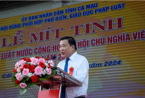 Nhằm tôn vinh Hiến pháp, pháp luật, giáo dục ý thức thượng tôn pháp luật cho mọi người trong xã hội, sáng ngày 08/11/2024, tại Trung tâm Văn hóa, Truyền thông và Thể thao huyện Cái Nước, Hội đồng phối hợp phổ biến, giáo dục pháp luật tỉnh Cà Mau tổ chức Lễ hưởng ứng Ngày Pháp luật Việt Nam năm 2024. Đây là hoạt động điểm nhấn quan trọng trong chuỗi các sự kiện hưởng ứng Ngày Pháp luật Việt Nam năm 2024 trên địa bàn tỉnh. Tham dự Lễ hưởng ứng Ngày Pháp luật Việt Nam có ông Nguyễn Sơn Ca - Thường trực Hội đồng nhân dân, Trưởng Ban pháp chế Hội đồng nhân dân tỉnh; ông Võ Thanh Tòng, Tỉnh ủy viên, Giám đốc Sở Tư pháp - Phó chủ tịch Thường trực Hội đồng phối hợp phổ biến giáo dục pháp luật tỉnh; các Ủy viên Hội đồng phối hợp phổ biến giáo dục pháp luật tỉnh; đại diện lãnh đạo các sở, ngành của tỉnh; đại diện lãnh đạo Ủy ban nhân dân các đơn vị cấp huyện trên địa bàn tỉnh; đại diện lãnh đạo Ủy ban nhân dân các xã, thị trấn và một số cán bộ ấp, khóm, hòa giải viên ở cơ sở, Đoàn Thanh niên và học sinh trên địa bàn huyện Cái Nước, tỉnh Cà Mau.