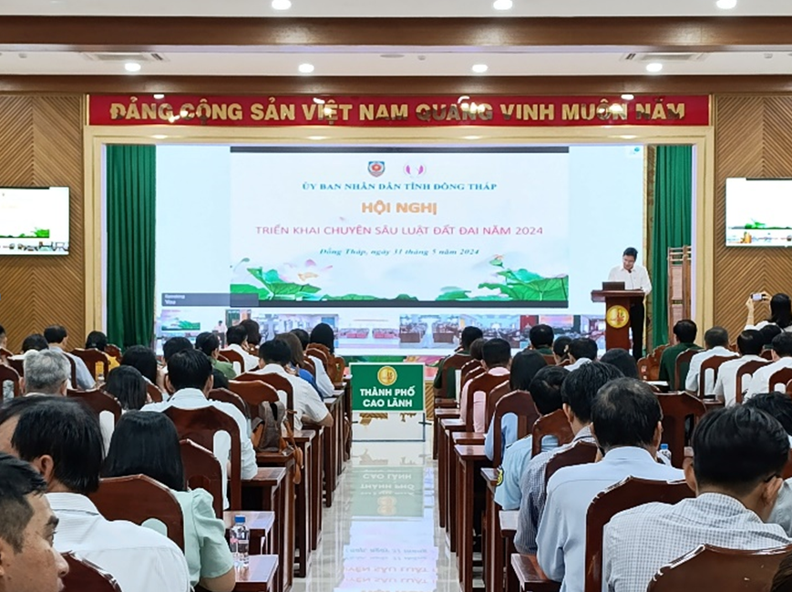 Thực hiện Luật Phổ biến giáo dục pháp luật và Kế hoạch số 93/KH-UBND ngày 21/3/2024 của Ủy ban nhân dân tỉnh Đồng Tháp về việc tổ chức tập huấn kỹ năng phổ biến, giáo dục pháp luật; bồi dưỡng kiến thức pháp luật cho Báo cáo viên pháp luật và Tuyên truyền viên pháp luật năm 2024 trên địa bàn tỉnh Đồng Tháp, ngày 31/5/2024, Ủy ban nhân dân tỉnh Đồng Tháp tổ chức Hội nghị tập huấn trực tuyến về kỹ năng phổ biến, giáo dục pháp luật và triển khai chuyên sâu Luật Đất đai năm 2024. Điểm cầu trung tâm của Hội nghị được đặt tại Hội trường Hương Sen, UBND thành phố Cao Lãnh, tỉnh Đồng Tháp và 11 điểm cầu tại UBND huyện, thành phố trên địa bàn tỉnh. Có cho hơn 2.000 đại biểu tham dự hội nghị là Báo cáo viên pháp luật, Tuyên truyền viên pháp luật và cán bộ phụ trách pháp chế các sở, ngành của tỉnh.