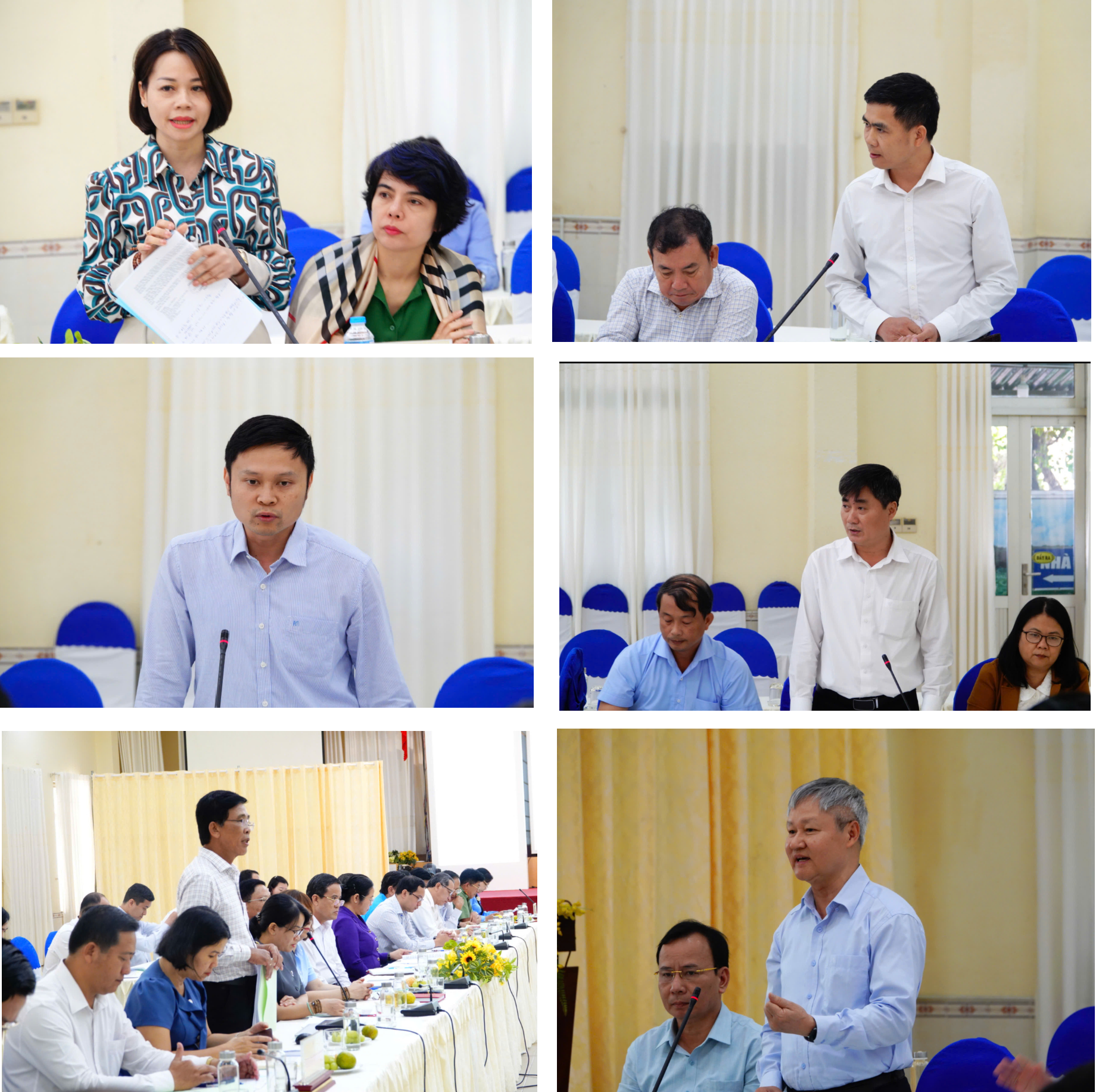Toàn cảnh buổi làm việc.Việc triển khai các Đề án về PBGDPL tại Long An đã đạt được những kết quả cụ thể. Tỉnh đã thực hiện nghiêm túc công tác truyền thông dự thảo chính sách theo Quyết định số 407/QĐ-TTg ngày 30/3/2022 của Thủ tướng Chính phủ phê duyệt Đề án “Tổ chức truyền thông chính sách có tác động lớn đến xã hội trong quá trình xây dựng văn bản quy phạm pháp luật giai đoạn 2022-2027” (Đề án 407), nhất là các dự thảo văn bản quy phạm pháp luật (VBQPPL) của trung ương (như: dự thảo Luật Đất đai (sửa đổi); Luật Tài nguyên nước; Luật Bảo hiểm xã hội, Luật Căn cước công dân…) và các dự thảo Nghị quyết VBQPPL của Hội đồng nhân dân tỉnh bằng các hình thức phù hợp như: Thông qua các kênh thông tin, báo chí của tỉnh, hệ thống loa truyền thông cơ sở; đăng tải toàn văn dự thảo lên Cổng thông tin điện tử của UBND tỉnh; tổ chức lấy ý kiến góp ý của các đối tượng có liên quan; tổ chức hội thảo, hội nghị, các buổi toạ đàm về pháp luật, trong đó, có nội dung truyền thông chính sách để người dân tiếp cận và chủ động tham gia góp ý đối với các chính sách, quy định pháp luật.