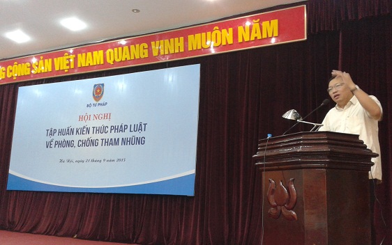 Thực hiện Kế hoạch hoạt động Đề án “Tuyên truyền pháp luật về phòng, chống tham nhũng, Công ước của Liên hợp quốc về chống tham nhũng trong cán bộ, công chức, viên chức và nhân dân” năm 2015, ngày 21/9/2015, tại Hà Nội, Bộ Tư pháp đã tổ chức Hội nghị tập huấn kiến thức pháp luật về phòng, chống tham nhũng cho đội ngũ Báo cáo viên pháp luật và thanh tra tại các Bộ, ngành Trung ương; cán bộ, công chức, viên chức Bộ Tư pháp.