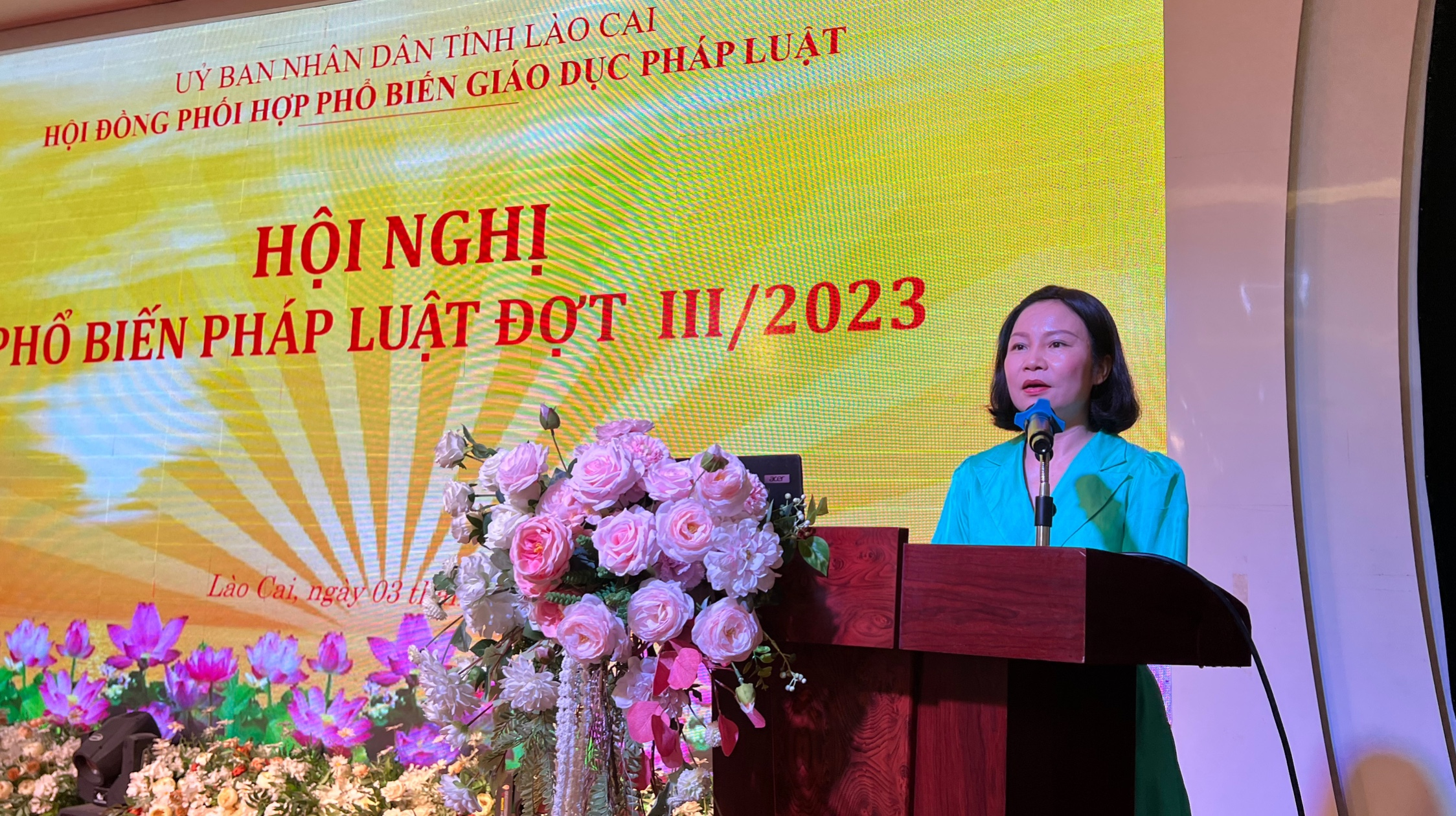 Thông qua Hội nghị, bà Nguyễn Thị Thúy, Phó giám đốc Sở Tư pháp đã quán triệt tinh thần chủ động, tích cực tham mưu Hội đồng phối hợp PBGDPL tỉnh, Ủy ban nhân dân cấp huyện triển khai có hiệu quả Kế hoạch số 54/KH-STP ngày 07/7/2023 của Sở Tư pháp bằng những hình thức và biện pháp phù hợp. Trong đó cần chú trọng đẩy mạnh ứng dụng công nghệ thông tin trong lĩnh vực PBGDPL, đảm bảo mọi tầng lớp Nhân dân trên địa bàn tỉnh tiếp thu được nội dung cơ bản của các văn bản pháp luật mới, những chính sách liên quan trực tiếp đến người dân, doanh nghiệp.