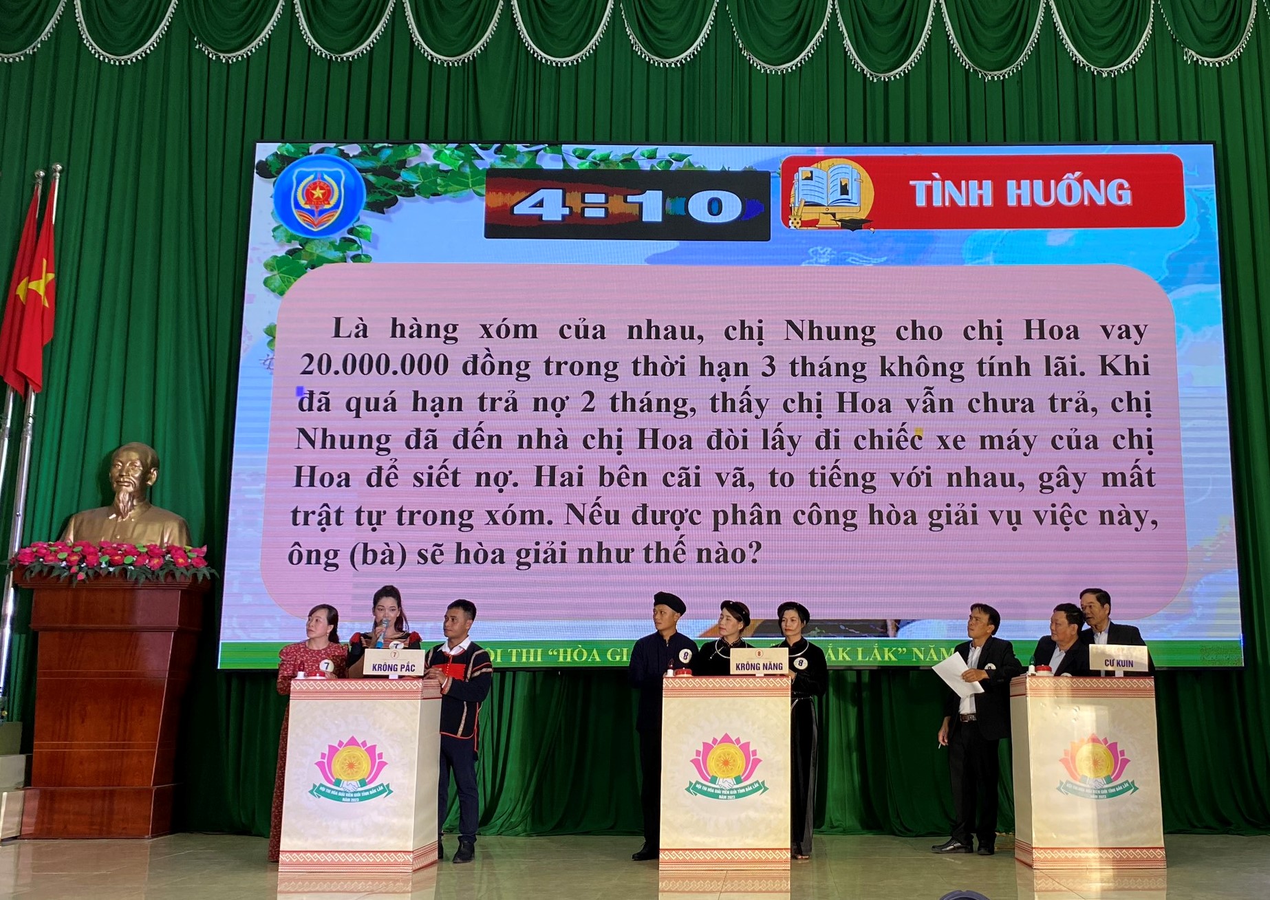 Các thí sinh tham gia tranh tài rất quyết liệt, điểm số bám đuổi rất sít sao; đặc biệt, phần thi tiểu phẩm các thí sinh đã khéo léo lồng ghép kiến thức pháp luật, kỹ năng hòa giải, tập quán, đạo đức, văn hóa truyền thống tốt đẹp của dân tộc với tài năng diễn xuất một cách sáng tạo, dí dỏm tạo nên những tiểu phẩm hấp dẫn, sống động, nhất là cách giải quyết tình huống hài hòa, có lý có, tình qua đó chuyển tải được nhiều thông tin và tạo sự lan tỏa, thu hút sự chú ý của nhân dân.