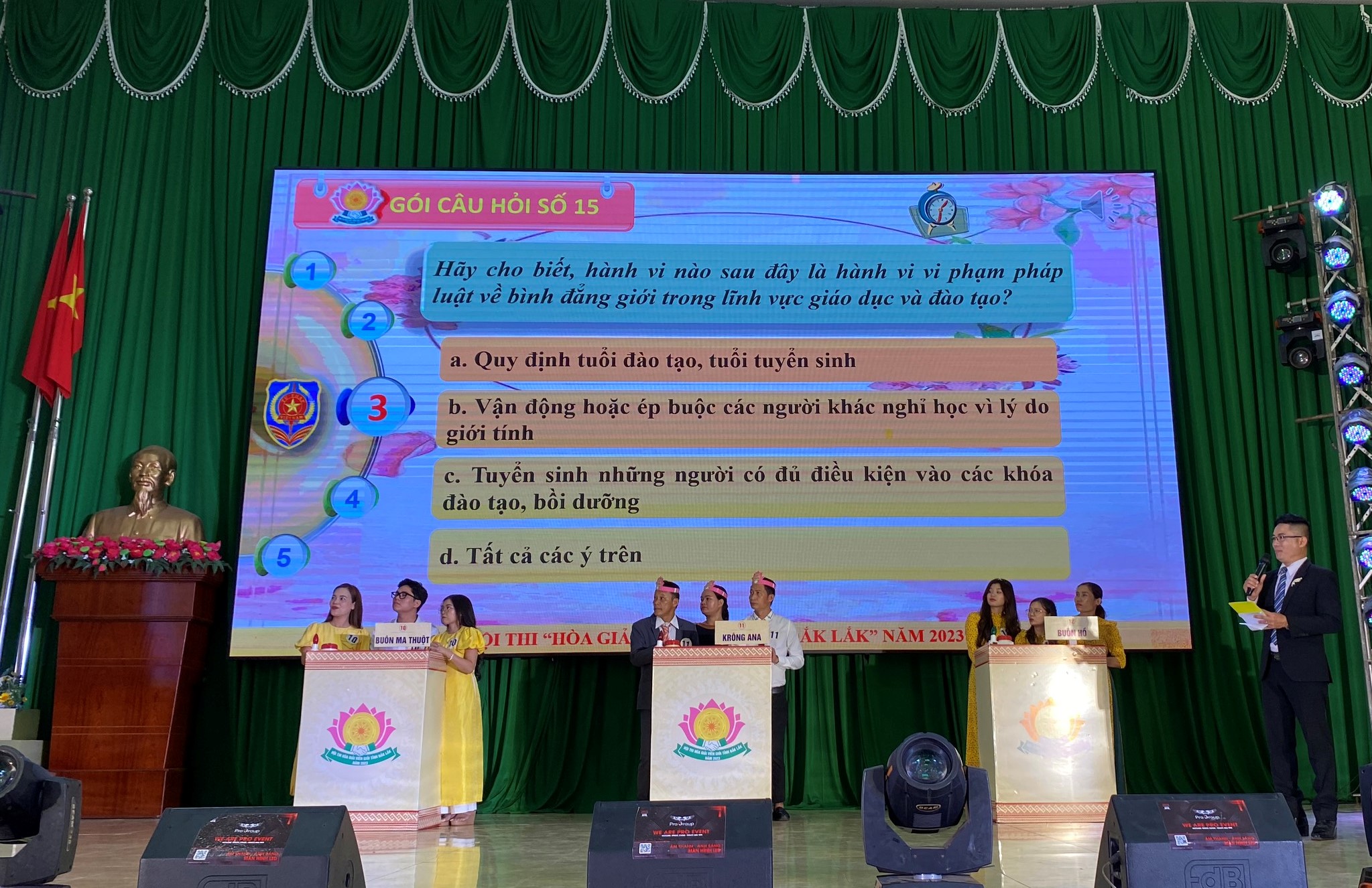 Giải cho các đội tham gia Hội thi: đội thi TP. Buôn Ma Thuột đã xuất sắc giành giải Nhất và đại diện cho tỉnh tham gia vòng thi khu vực Hội thi “Hòa giải viên giỏi toàn quốc lần thứ IV”, sẽ được tổ chức vào tháng 9/2023 tại TP. Nha Trang (tỉnh Khánh Hòa); Giải Nhì thuộc về các đội: huyện Krông Năng và huyện Krông Ana; Giải Ba thuộc về các đội: thị xã Buôn Hồ, huyện Ea Súp và huyện Krông Bông; 9 huyện đạt giải Khuyến khích là: Krông Pắc, M’Drắk, Lắk, Ea Kar, Buôn Đôn, Cư M’gar, Krông Búk, Cư Kuin và Ea H’leo.