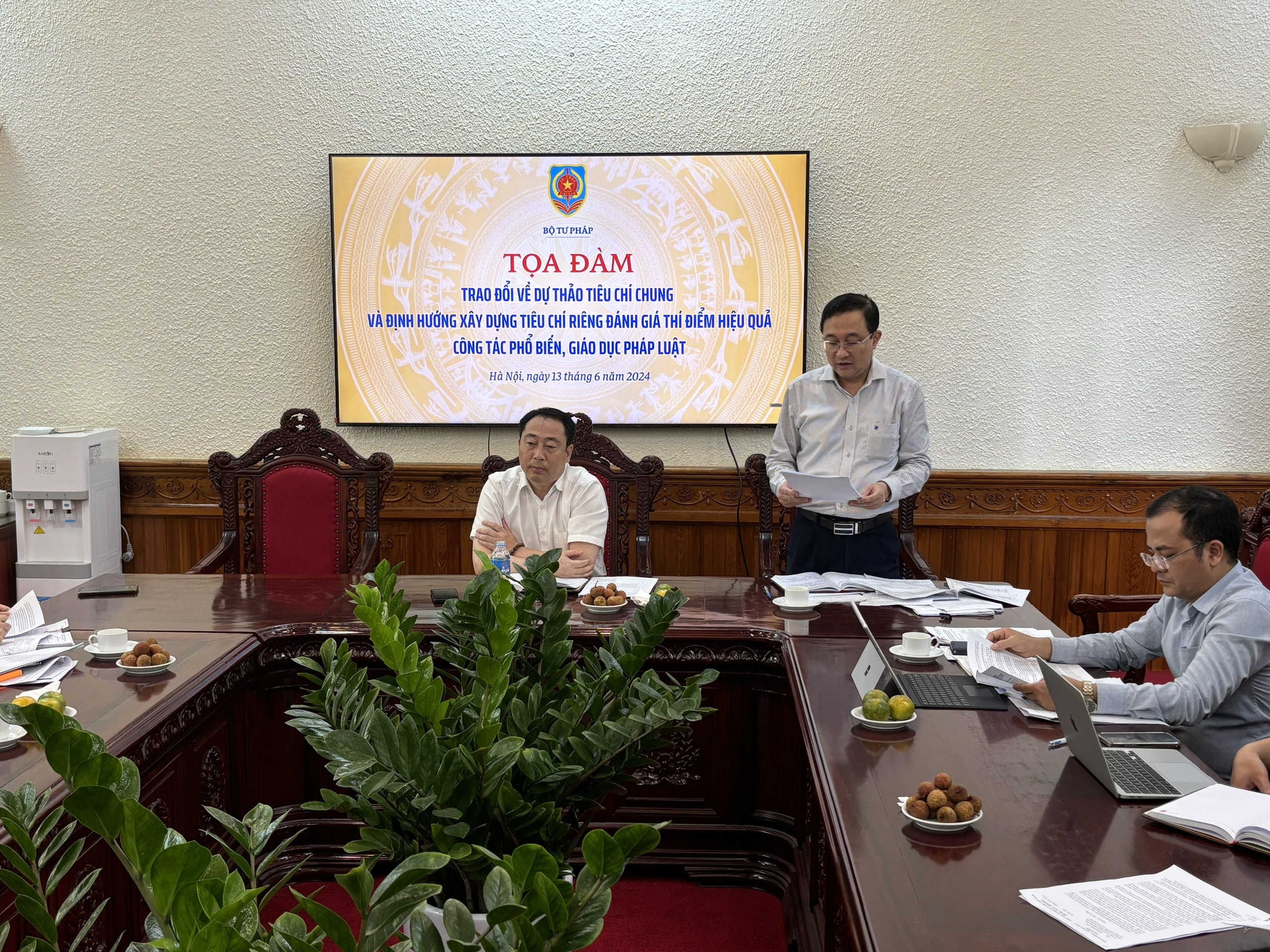 Tại Tọa đàm, đồng chí Phan Hồng Nguyên, Phó Cục trưởng Cục PBGDPL khái quát cách tiếp cận, những nội dung chính của dự thảo Khung tiêu chí chung đánh giá thí điểm hiệu quả công tác PBGDPL. Theo đó, Khung tiêu chí chung gồm 02 nhóm: (i) Nhóm tiêu chí đánh giá mức độ hoàn thành trách nhiệm quản lý nhà nước về PBGDPL (45 điểm); (ii) Nhóm tiêu chí đánh giá kết quả đầu ra của hoạt động PBGDPL của bộ, ngành, địa phương (55 điểm) và gợi mở về đối tượng, nội dung, hình thức PBGDPL để các bộ xây dựng Tiêu chí riêng phù hợp với đặc thù của bộ, ngành. Đối với Bộ Lao động - Thương binh và Xã hội, xuất phát từ chức năng, nhiệm vụ, quyền hạn được quy định tại Nghị định số 62/2022/NĐ-CP ngày 12/9/2022, có thể lựa chọn nội dung như lao động, tiền lương; việc làm; giáo dục nghề nghiệp; bảo hiểm xã hội... để PBGDPL cho đối tượng, như: Công chức, viên chức, sinh viên các cơ sở đào tạo trực thuộc; trẻ em, người khuyết tật… Đối với Bộ Tài Nguyên và Môi trường, căn cứ chức năng, nhiệm vụ, quyền hạn được quy định tại Nghị định số 68/2022/NĐ-CP ngày 22/9/2022, có thể lựa chọn các lĩnh vực như đất đai, tài nguyên nước, tài nguyên khoáng sản, môi trường... để tổ chức PBGDPL cho công chức, viên chức, sinh viên các cơ sở đào tạo trực thuộc... thuộc phạm vi quản lý và người dân. Đối với nhóm Tiêu chí 2 (Nhóm tiêu chí đánh giá kết quả đầu ra của hoạt động PBGDPL của các địa phương), các địa phương thí điểm căn cứ vào hướng dẫn tại Tiêu chí 2.1 (Mức độ đánh giá của đối tượng thụ hưởng về chất lượng tổ chức các hoạt động PBGDPL cụ thể ), Tiêu chí 2.2 (Mức độ tác động của các hoạt động PBGDPL cụ thể) để bổ sung chỉ tiêu và xác định điểm số đối với từng mức độ hoàn thành nhiệm vụ. Các hình thức PBGDPL được lựa chọn để đánh giá có thể là: Phổ biến pháp luật trực tiếp, cung cấp thông tin văn bản quy phạm pháp luật trên trang thông tin điện tử của cơ quan, trên các phương tiện thông tin đại chúng...